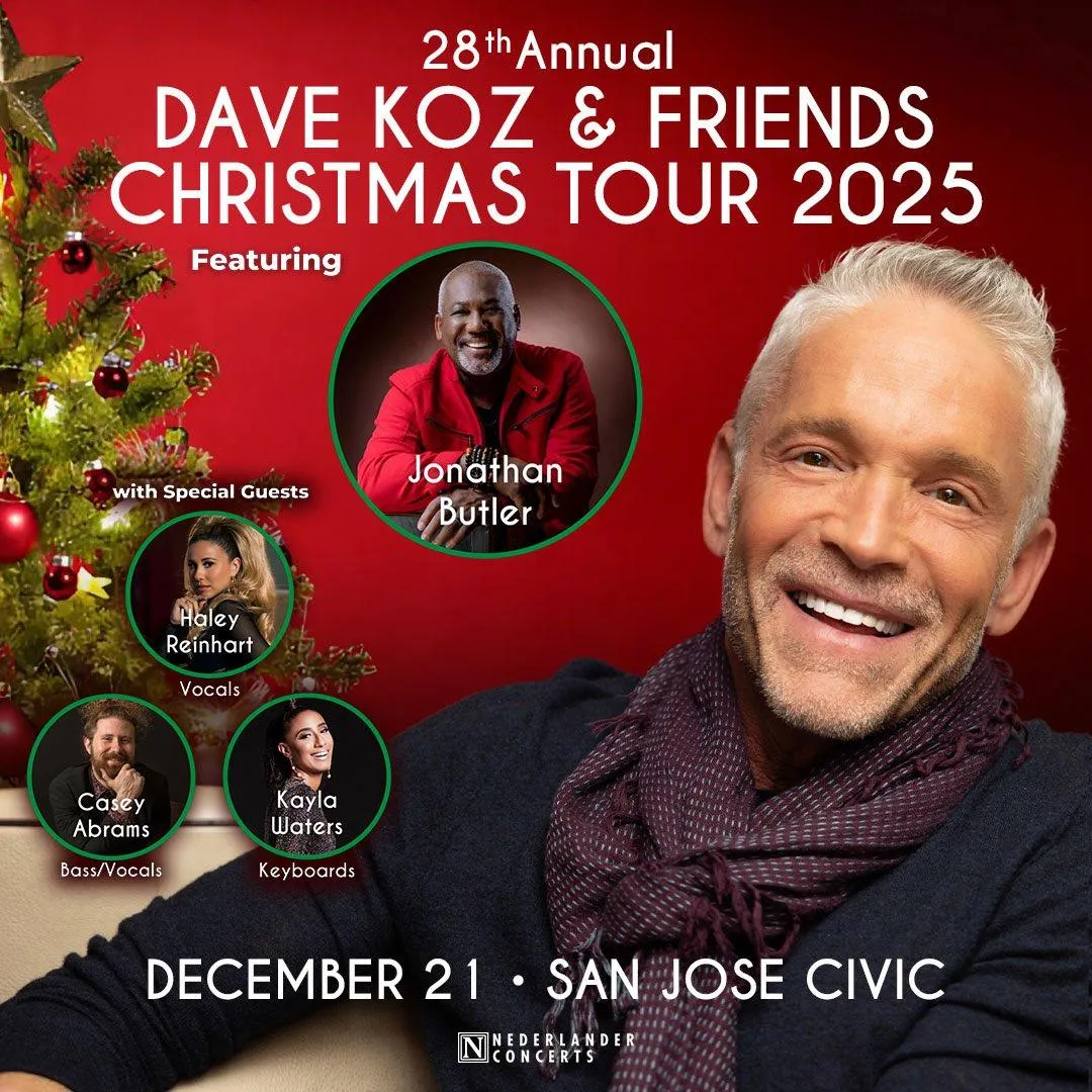 Enjoy VIP tickets for four to the 28th Annual Christmas Show on Tuesday, December 23, 2025, at the Luther Burbank Center for the Arts—plus a private meet-and-greet with Dave Koz after the show.