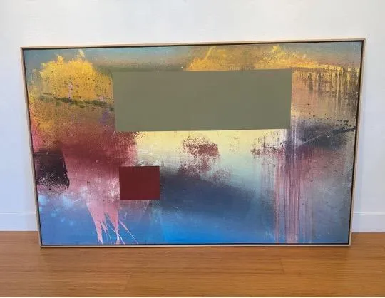 A luminous abstract by Richard Saba, Chance Encounter captures spontaneity and emotion through layered textures and flowing color. A moment of connection, beautifully expressed.